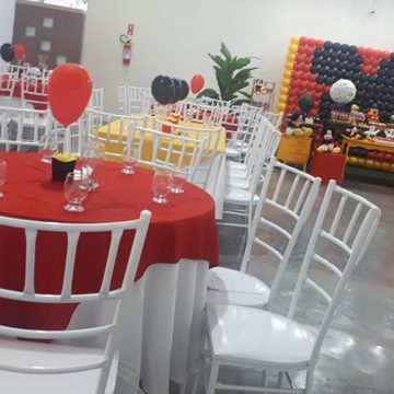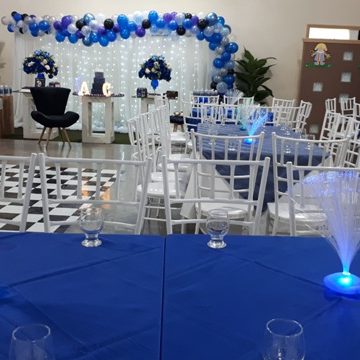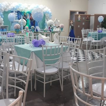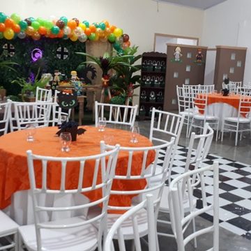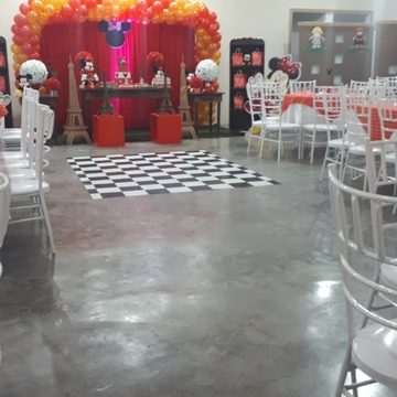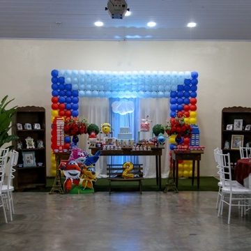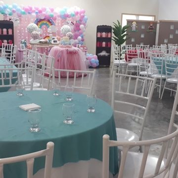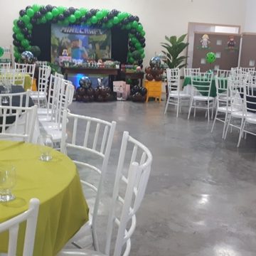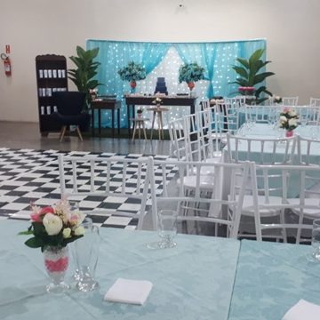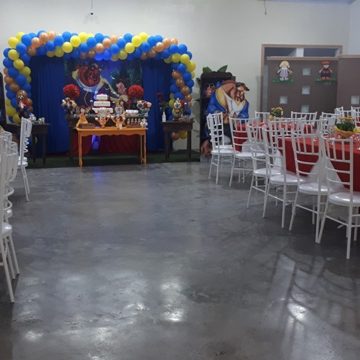 Com capacidade para 120 pessoas sentadas em uma área com 500m² totalmente plano com pé direito 4 mts, ar condicionado, telão p/ retrospectiva, iluminação especial na hora do parabéns, parabéns animado, som ambiente.